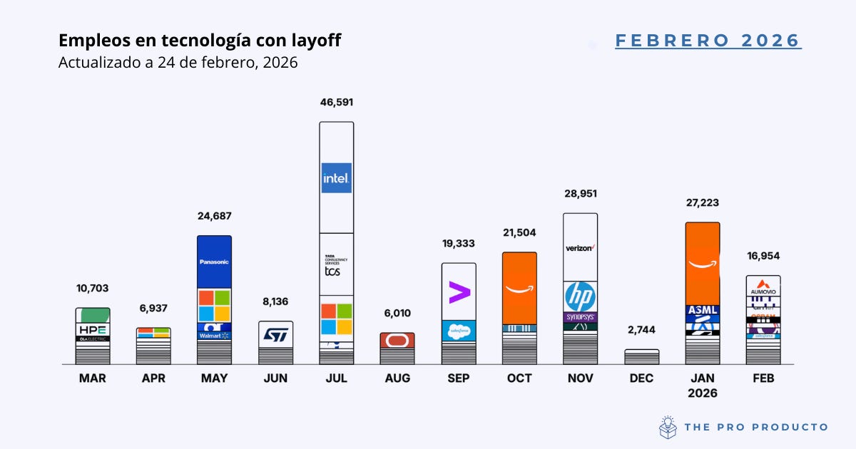 Durante 2025, 246k empleados en tecnología fueron despedidos o “dejados ir”. Solo llevamos 2 meses y ya han ocurrido 44k despidos. Lo que hace parecer que la tendencia es esperar al menos otras 220k personas despedidas durante 2026. Por lo que, en mi opinión se esperan aún más recortes.