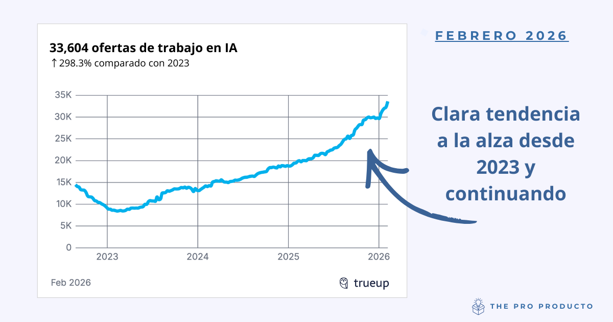Si revisamos solo roles de IA para PM (tanto en empresas de AI como en roles de AI dentro de empresas tradicionales), el crecimiento es impresionante.